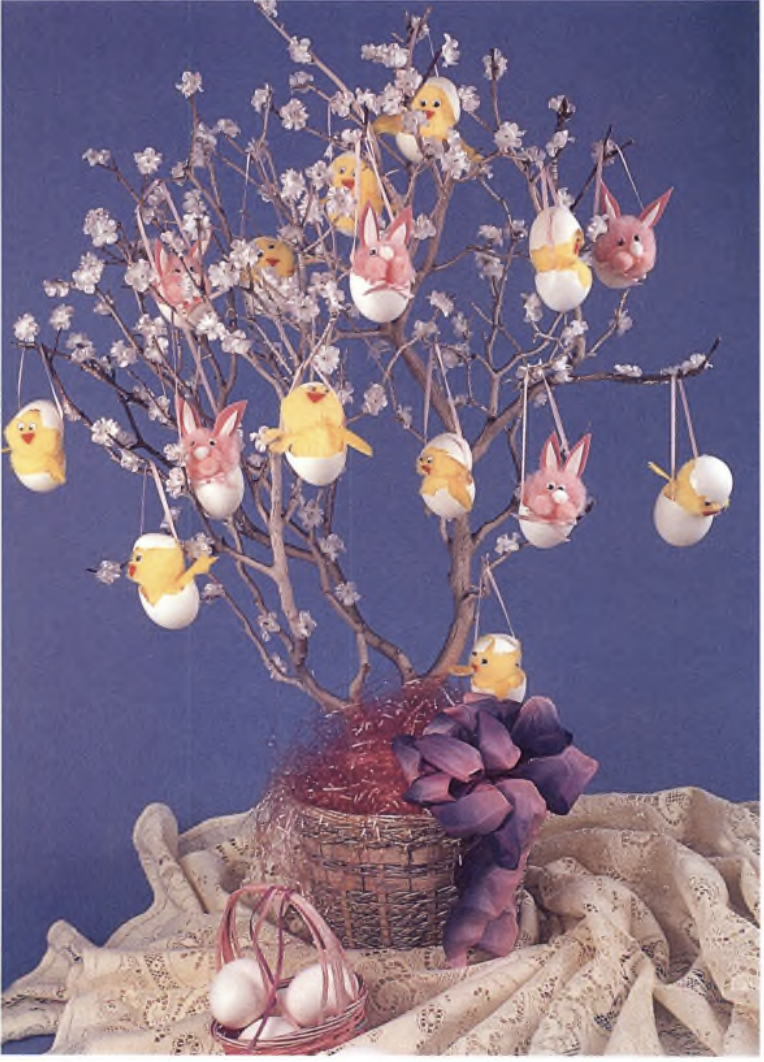 Easter Egg Tree with Hatching Chick and Bunny Ornaments Easter Egg Tree with Hatching Chick and Bunny Ornaments